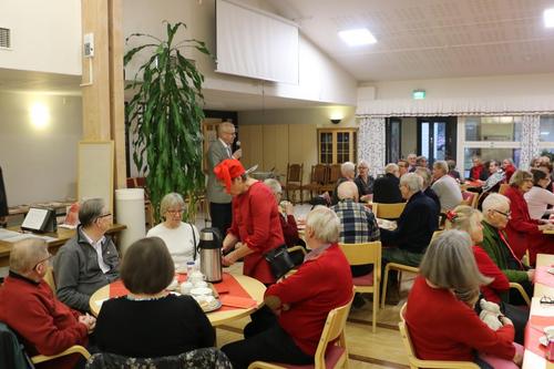 Vuoden päätteeksi kokoonnuimme Palvelutalolle viettämään joulujuhlaa. Söimme joulupuuron sekahedelmäkiiselin kanssa ja pääle saimme vielä torttukahvit