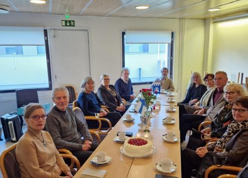 Kino Kirkkonummen lämpiössä vietettiin "tasavuosia" täyttäneiden syntymäpäiviä 17.11.2022, onnittelut vielä kerran. Puheenjohtaja Taisto Koivumäki toivotti kaikki tervetulleiksi. Kiitos musiikista Veijo Honkanen ja runosta Ritva Kuosa.